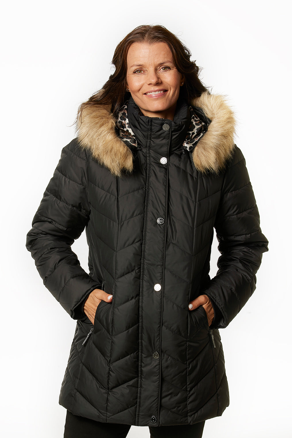 Feminin luksus dunjakke til kvinder i skandinavisk design fra Danwear. Komfort og praktik forenes i den lækre model. Den har en super pasform og sidder meget behagelig. Desuden leverer mærket en meget lækker blød kvalitet. Den er dejlig at bevæge sig i og vejer ikke særlig meget. Jakken er fyldt med ægte dun og har en aftagelig hætte med "faux fur" pelskant samt låsbare lommer. Perfekt til udendørsaktiviteter i weekenden eller daglig brug i byen.